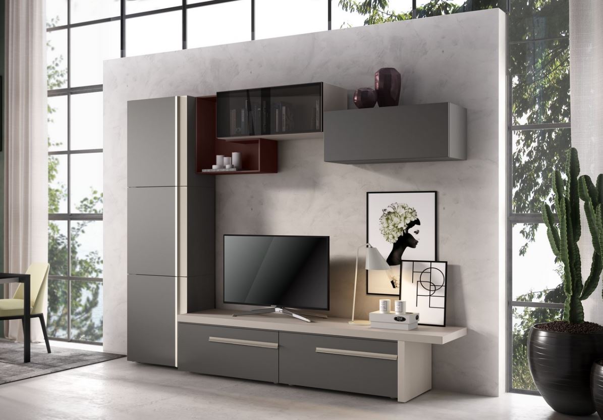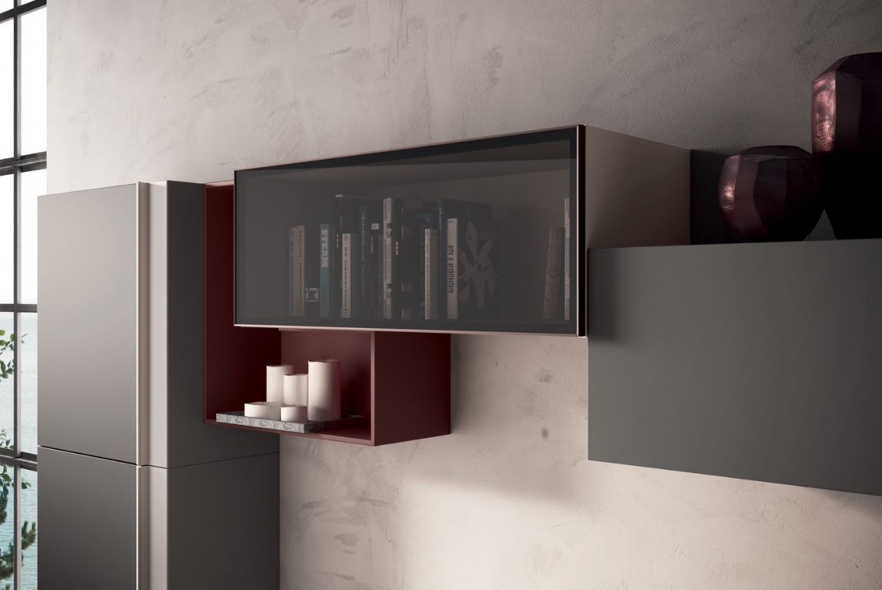 Basi cestone, pensili vasistas ed elemento colonna in colore grigio londra.
