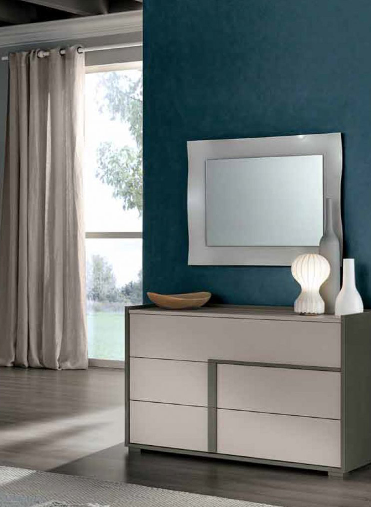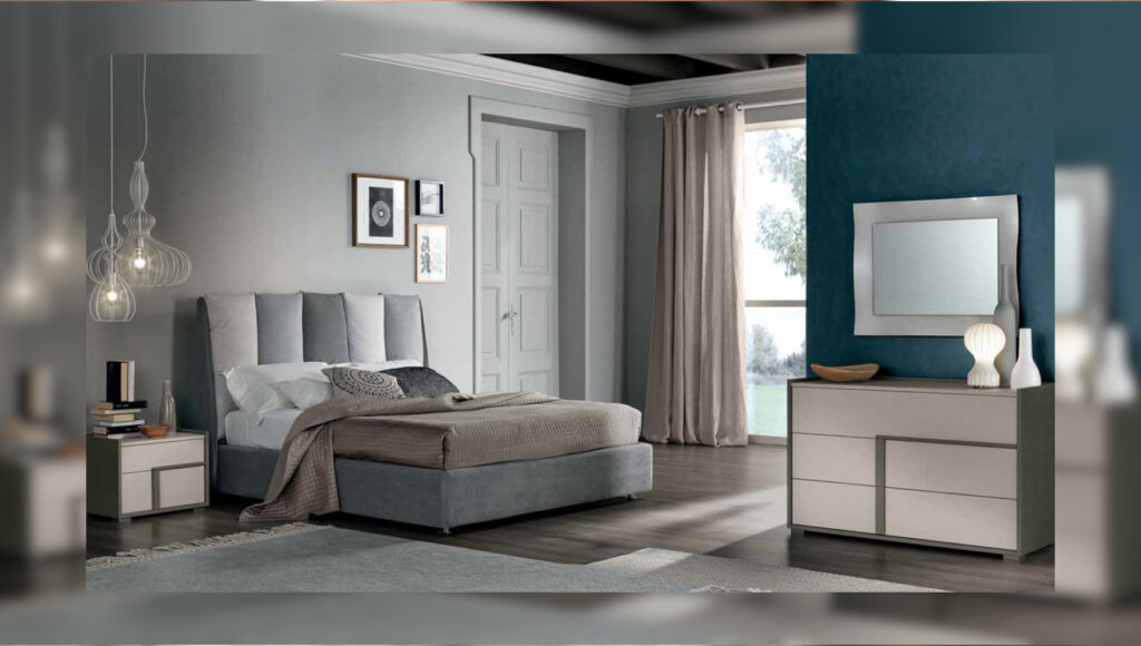 Camera da letto moderna in grigio Londra e cachemire, disponibile in diverse composizioni e colori.
