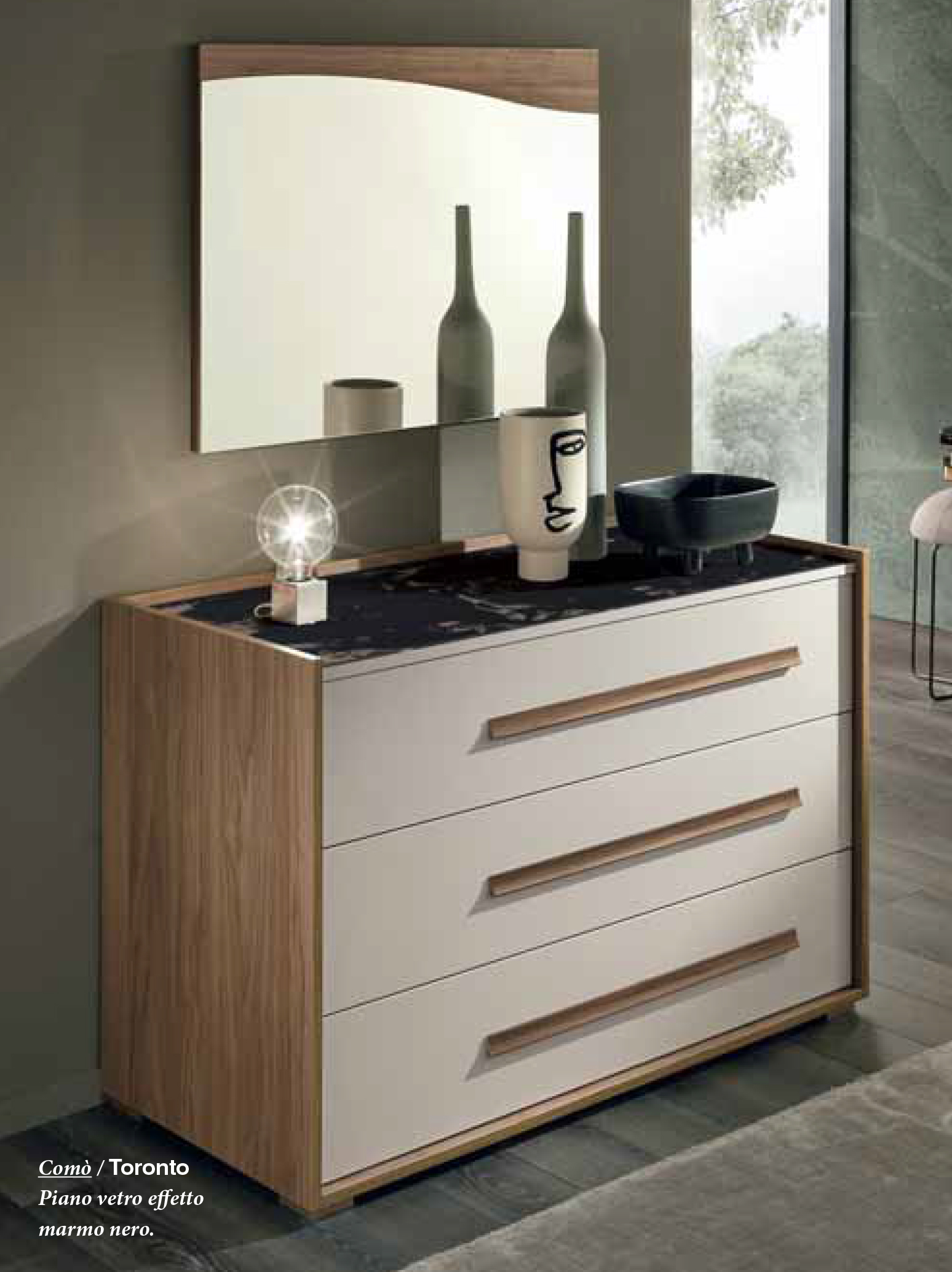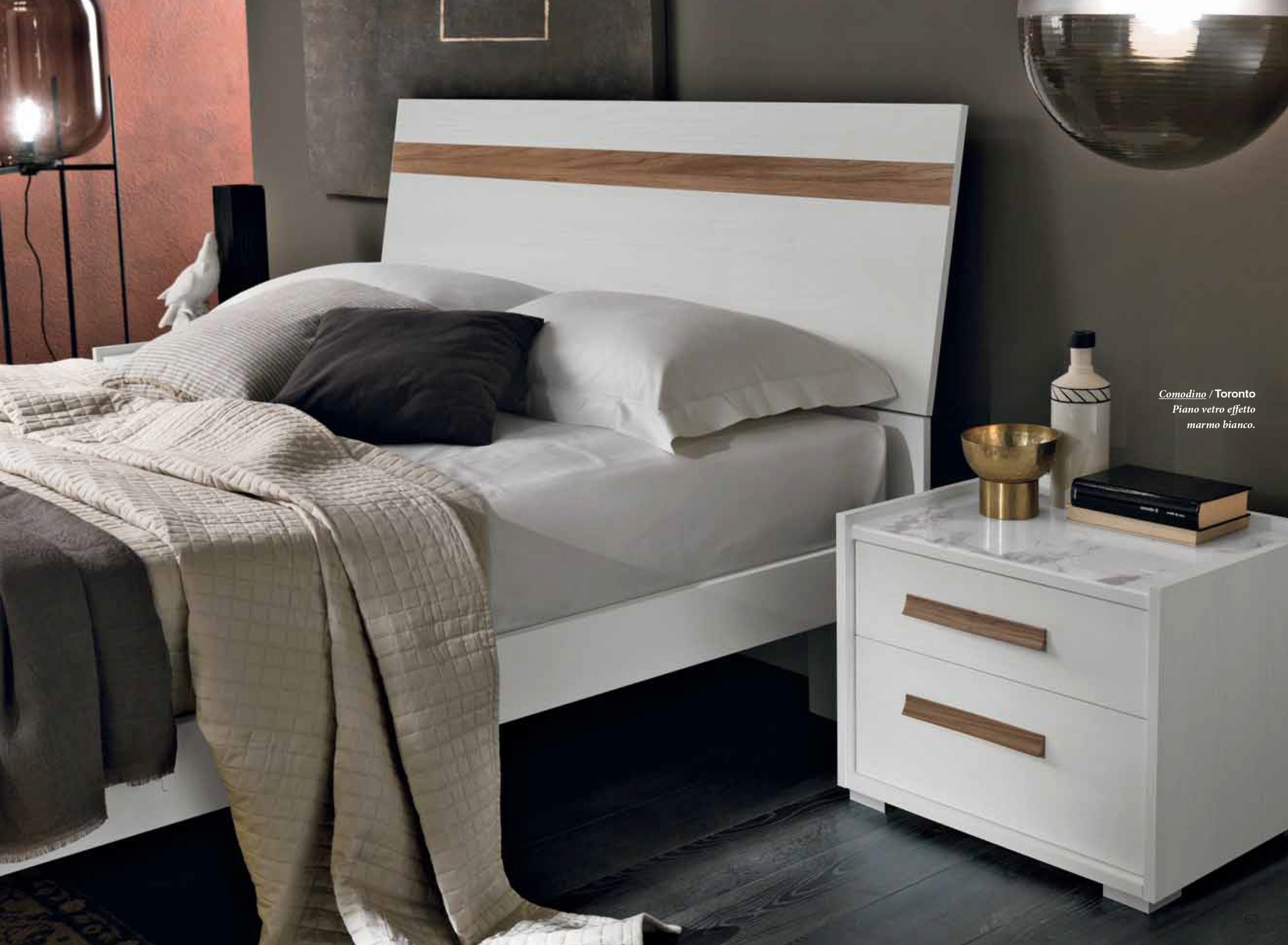 Camera da letto moderna in noce bianco, disponibile in diverse composizioni e colori.