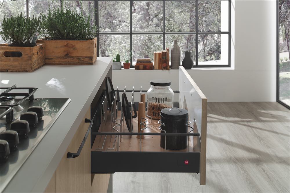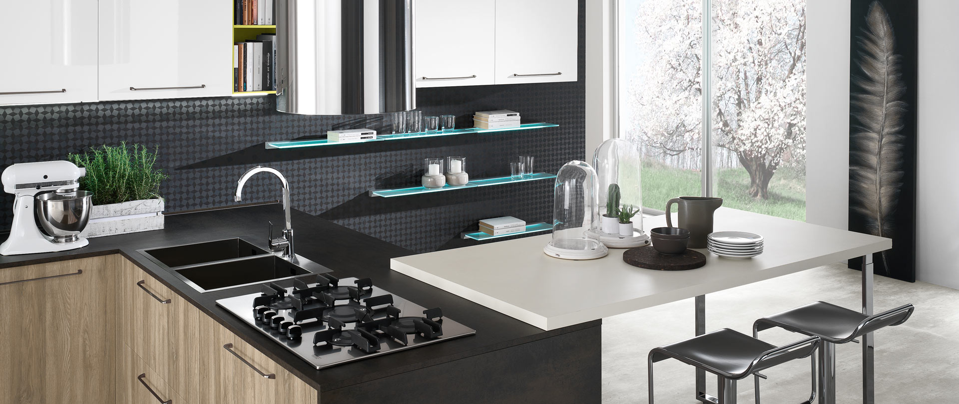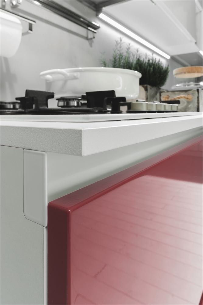 Grande esempio di cucina componibile Made in Italy, la cucina Aurora offre un’alta qualità in tutte le composizioni grazie allo spessore da 22 mm delle ante, alla qualità degli elettrodomestici, agli innovativi dispositivi di movimentazione, tra cui il sistema di frenaggio di ante e cassetti. La cucina Aurora è realizzata con pregiate ante in MDF, classe E1, spessore 22 mm, rivestimento in PVC e raggio 3 sui bordi e sugli spigoli. Disponibile anche con maniglia a gola