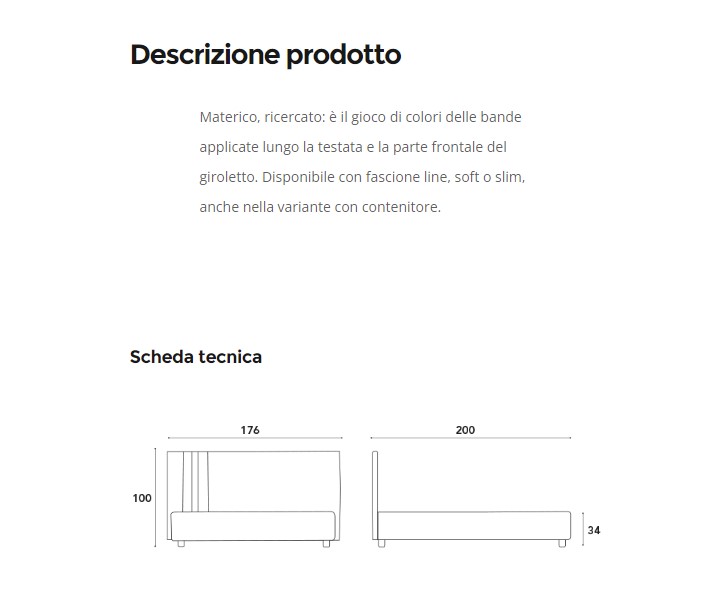 La possibilità di scelta dei colori che animano la testata rende il letto dinamico e coinvolgente. Disponibile con fascione line, soft o slim, anche nella variante con contenitore.