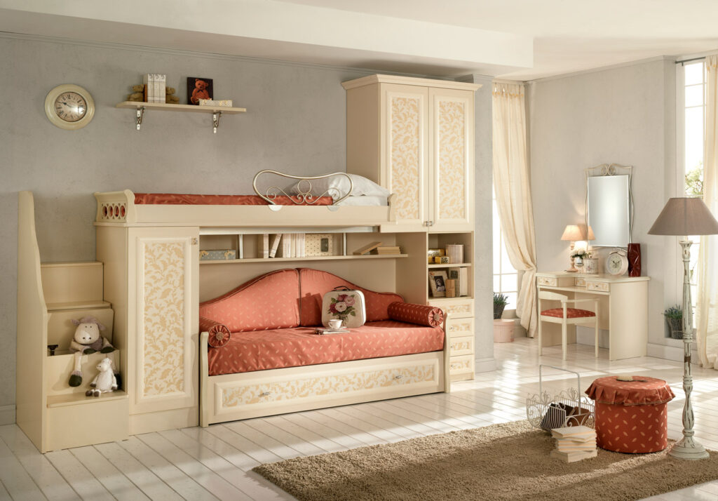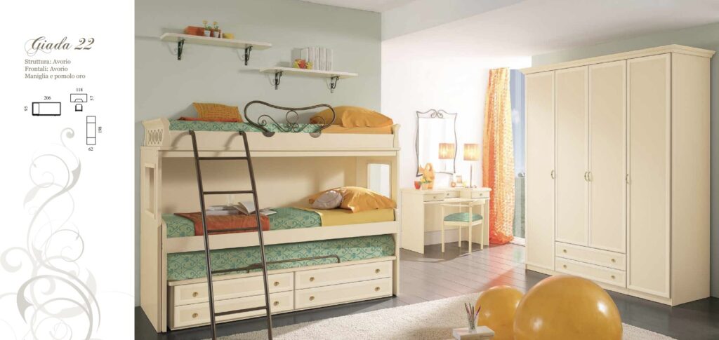 Le camerette classiche sono realizzate in legno e seguono linee e caratteristiche di chi ama la tradizione degli arredamenti di una volta, disponibili con colori caldi che spaziano dal pastello fino al noce, in grado di garantire un’atmosfera rilassante e serena, fornendo la massima attenzione per ogni singolo dettaglio.