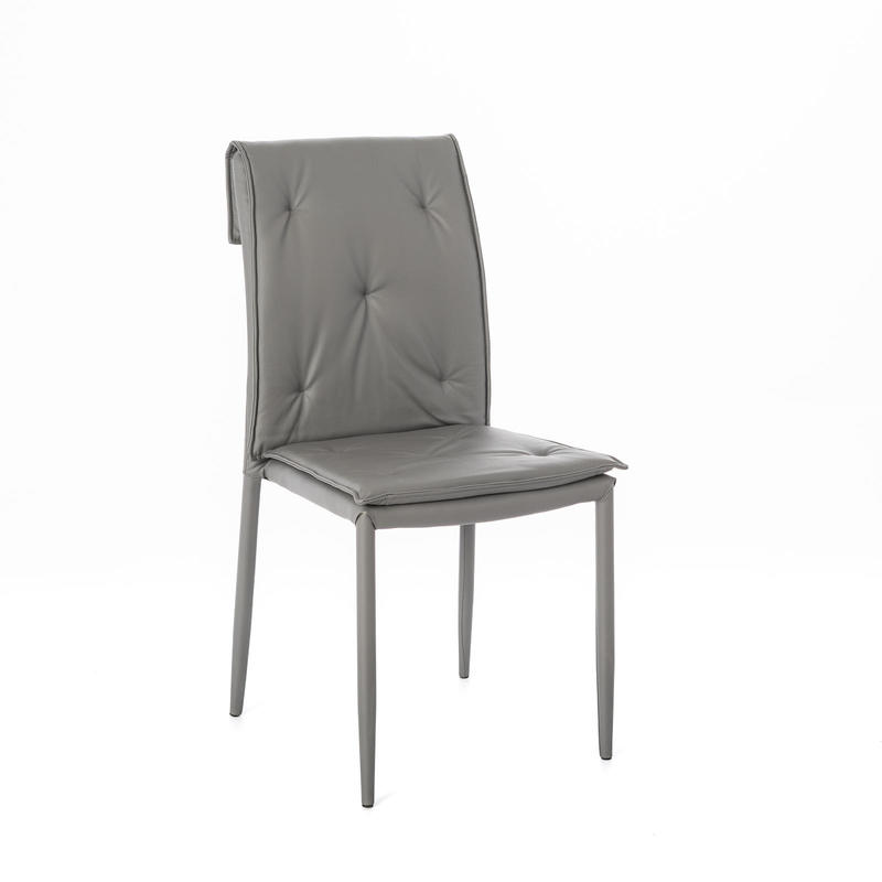 Seduta e schienale rivestiti in similpelle imbottita e gambe in metallo rivestite in similpelle.