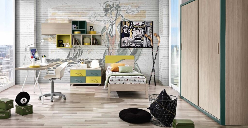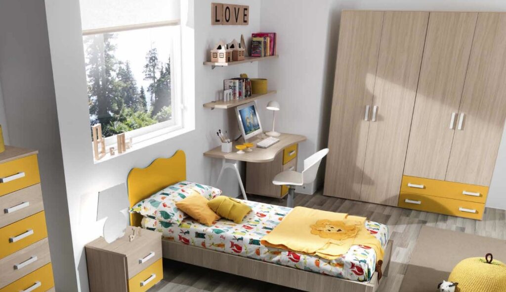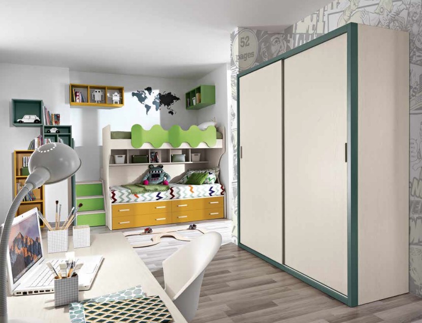 Cameretta moderna, disponibile in diverse composizioni e colori.