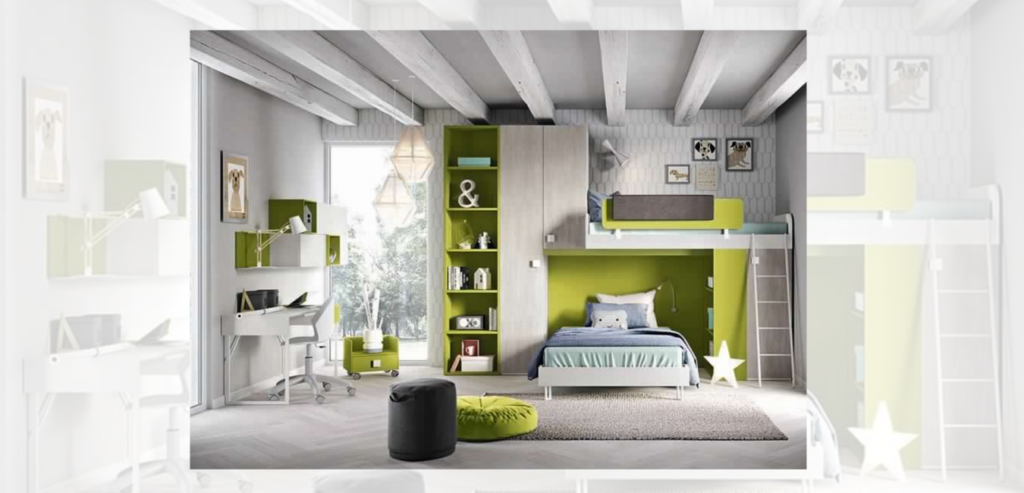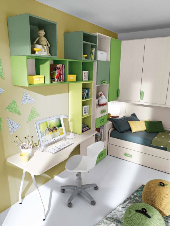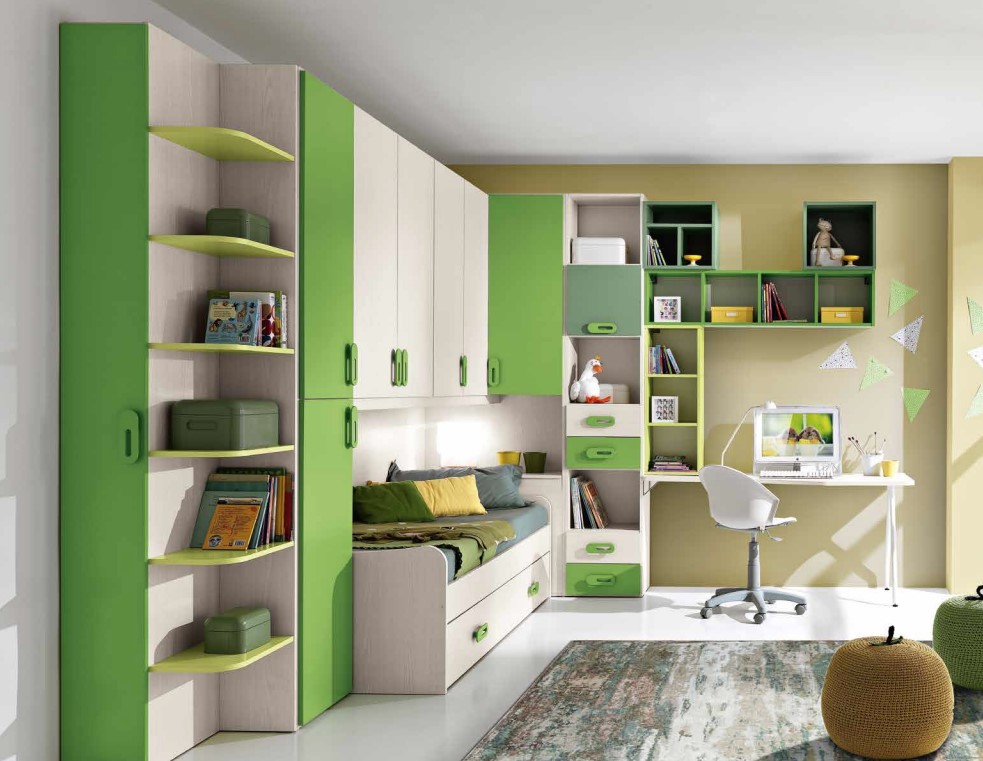 Cameretta moderna, disponibile in diverse composizioni e colori.