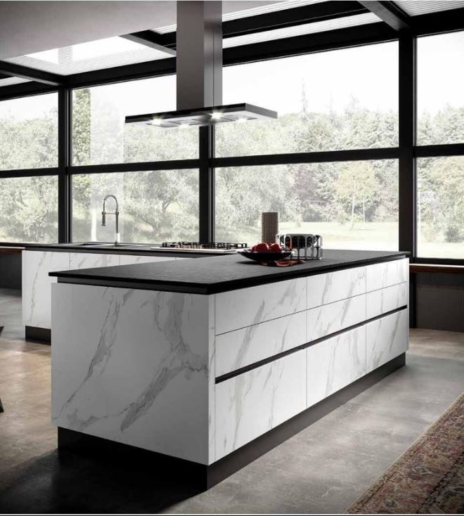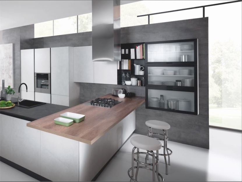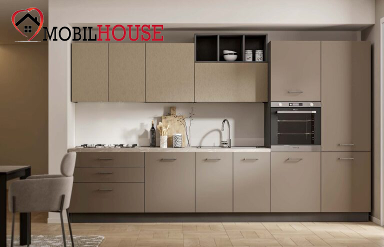 Cucina 3,60mt basalto e cachemire, con effetto dogato