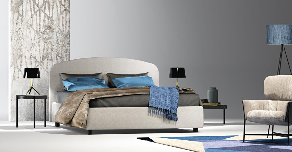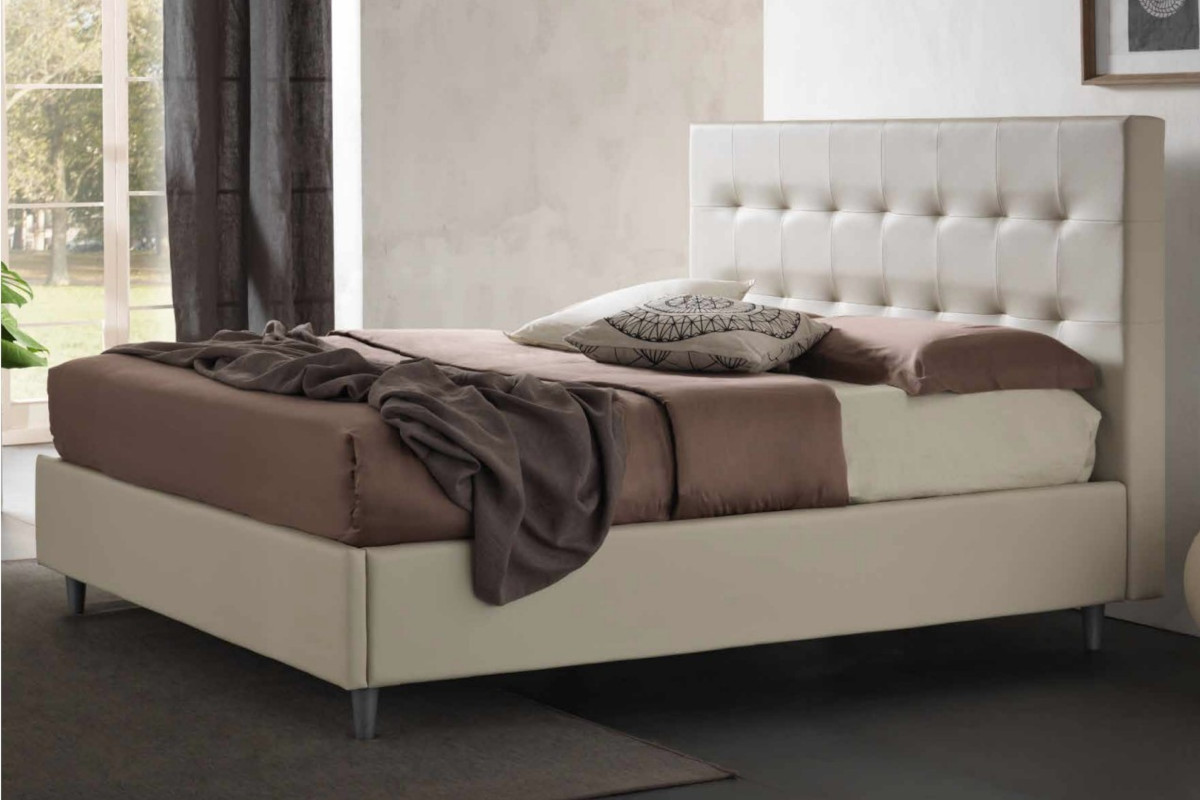 Letto NEW YORK imbottito in tessuto. Disponibile in diversi colori e tessuti.