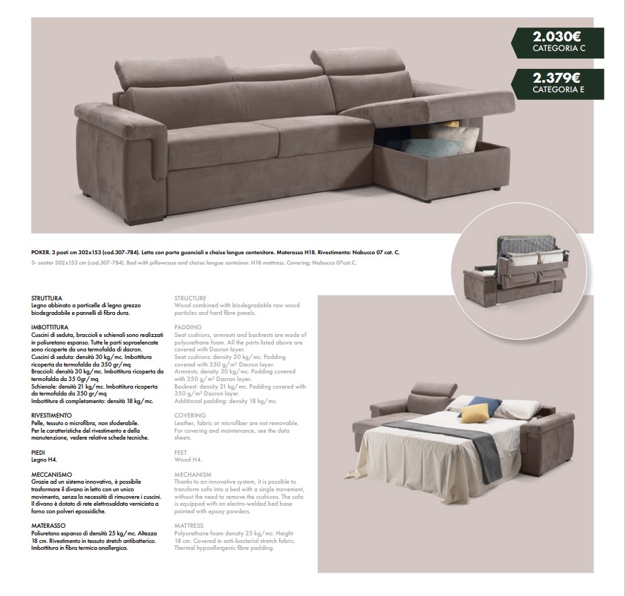 Il divano letto POKER è disponibile in diverse composizioni, colori e tessuti.