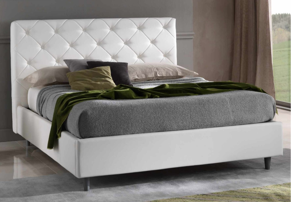 Letto STOCCOLMA imbottito in tessuto. Disponibile in diversi colori e tessuti.
