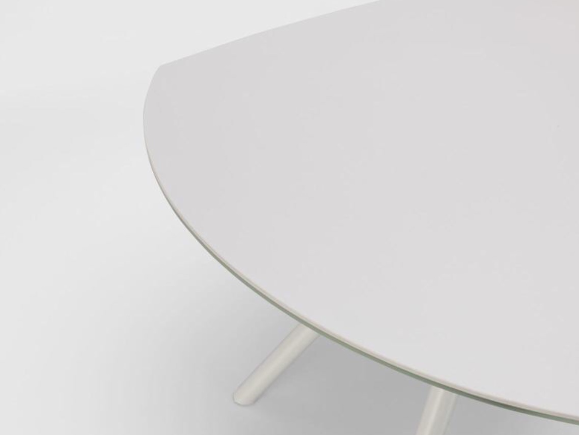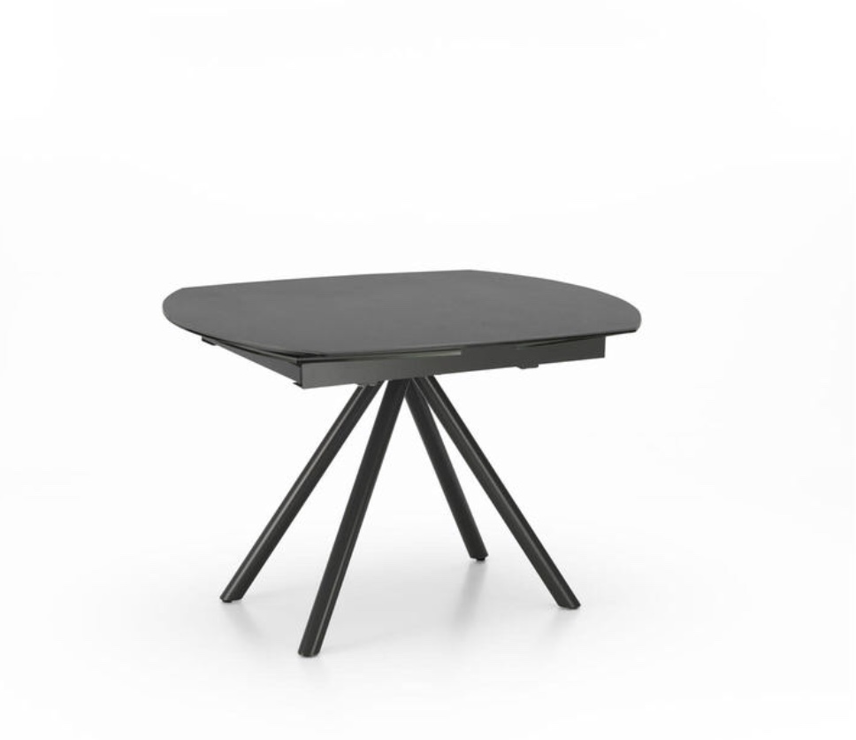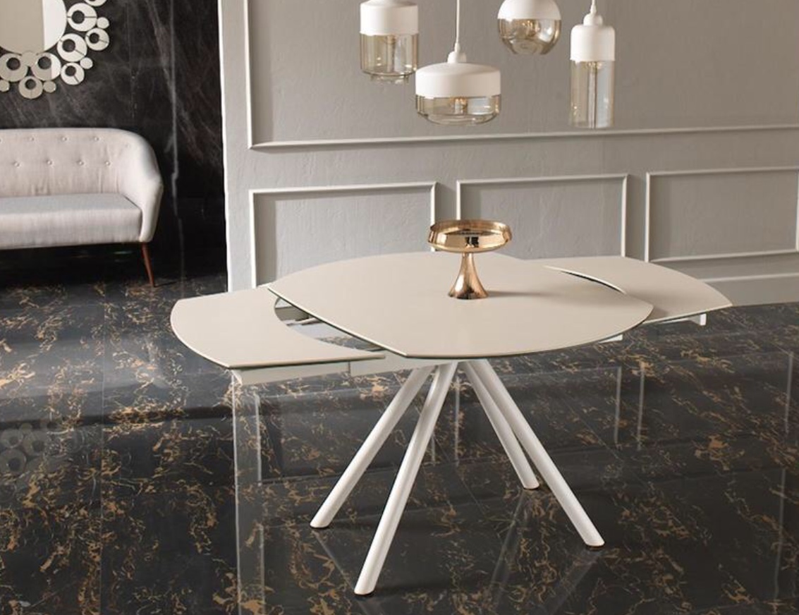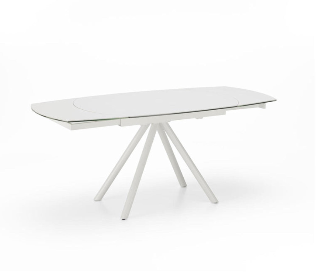 Tavolo moderno allungabile con top in ceramica su vetro, gambe in metallo verniciato