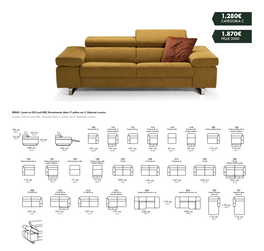 Il divano TREND è disponibile in diverse composizioni, colori e tessuti.