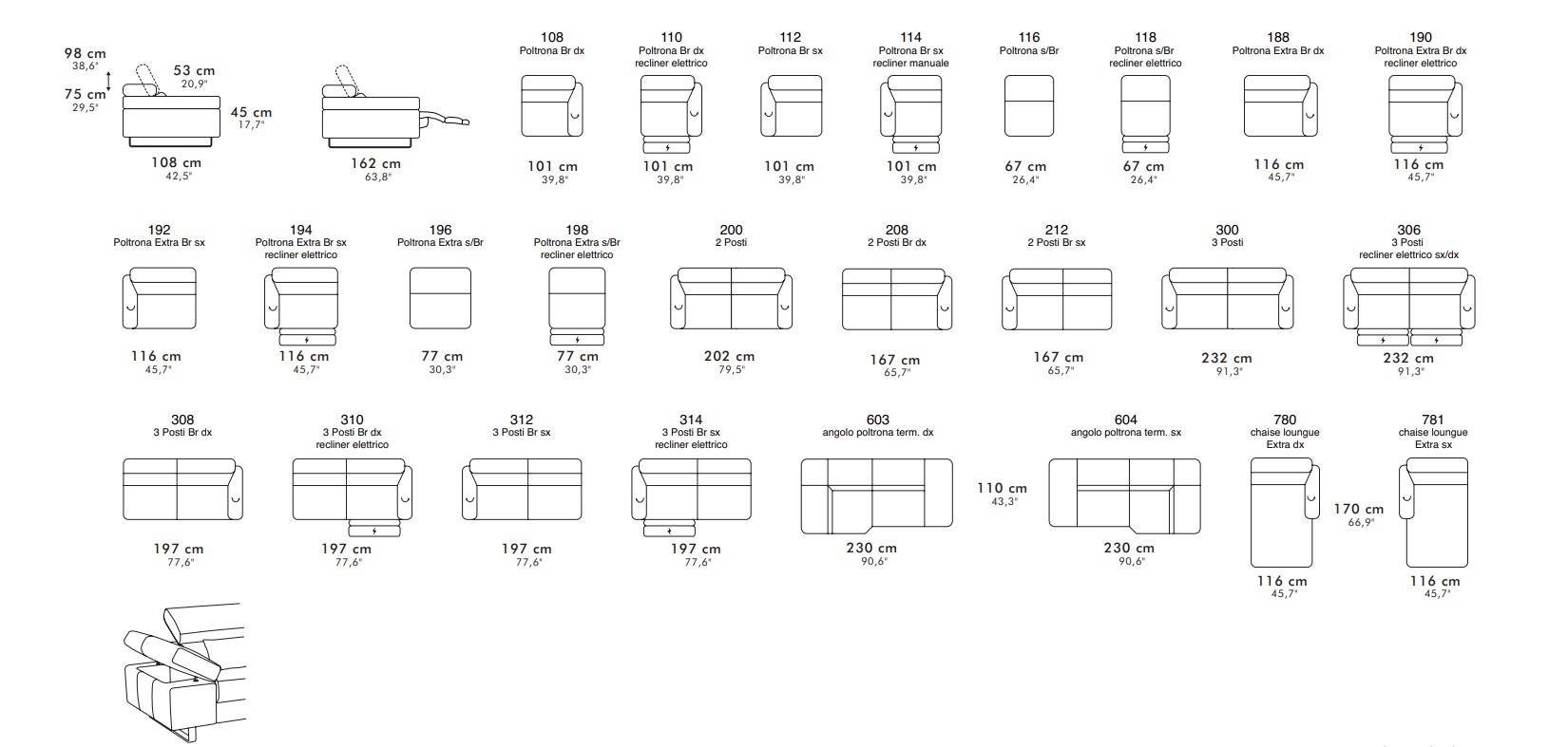 Cuscini di seduta: densità 35 kg/mc. Imbottitura